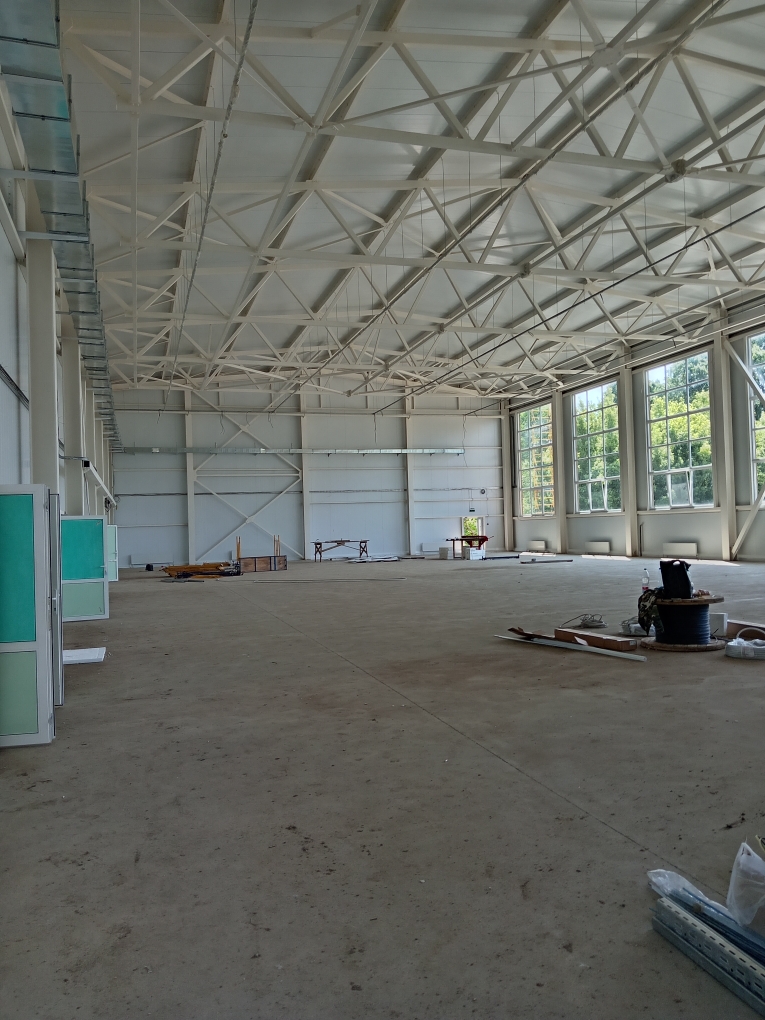 В настоящее время выполняется устройство вертикальной планировки, монтаж электроснабжения, пожарной безопасности, охранного оповещения, устройство перегородок из ГКЛ, устройство внутреннего водоснабжения и водоотведения, монтаж труб отопления, выполняются работы по внутренней отделке помещений. Физическая готовность объекта составляет 77 процентов.