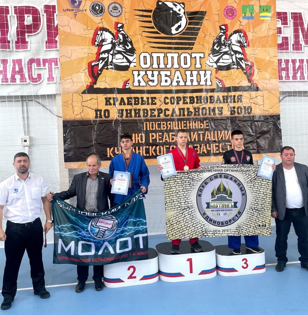 В минувшие выходные на территории спортивного комплекса «Холмский» прошли традиционные краевые соревнования по универсальному бою «Оплот Кубани», посвященные Дню реабилитации кубанского казачества. Это замечательное событие собрало более двухсот спортсменов из восьми муниципалитетов Краснодарского края.