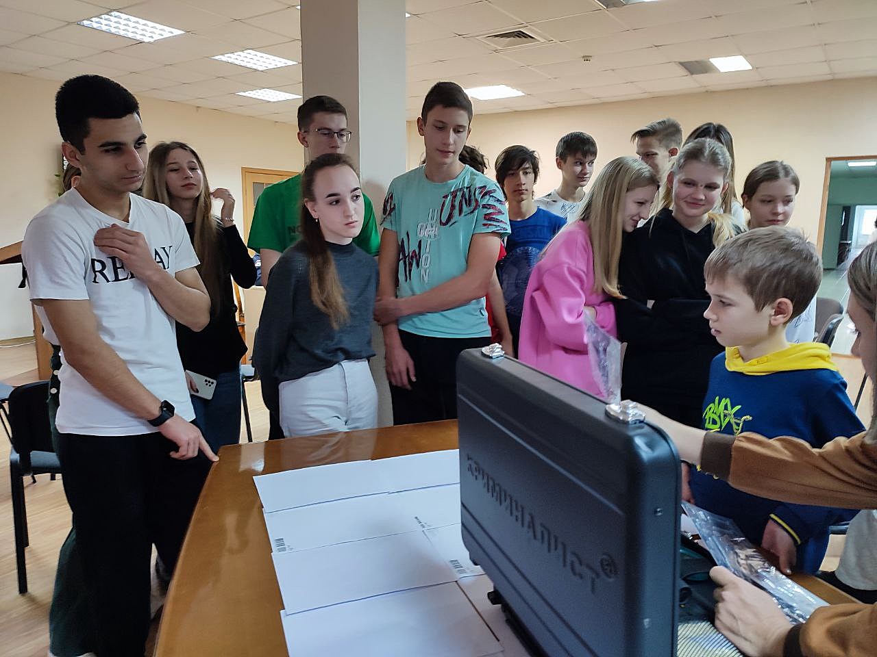 Не стало исключение и проведение данной акции на территории Абинска. Так в День российского студенчества юноши и девушки знакомятся со службой в органах внутренних дел. молодые люди узнали подробнее о работе участкового уполномоченного полиции, эксперта-криминалиста и кинолога. Учащиеся профильного «полицейского класса» школы № 4 города Абинска получили уникальную возможность ознакомиться с работой полицейских. Сотрудники ОМВД России по Абинскому району и представители Общественного совета при Отделе радушно встретили юных гостей в спортивном комплексе «Олимпийский», где рассказали о специфике службы структурных подразделений полиции. Молодые люди пообщались с участковыми уполномоченными полиции, инспектором-кинологом и экспертом-криминалистом.