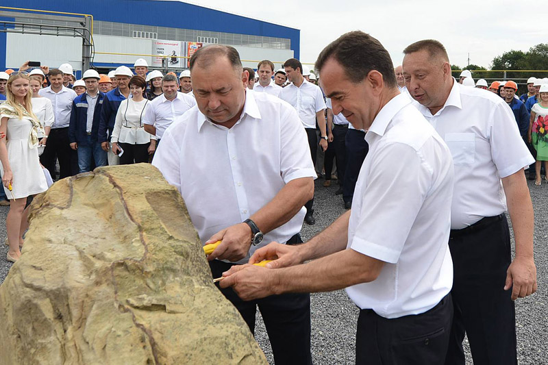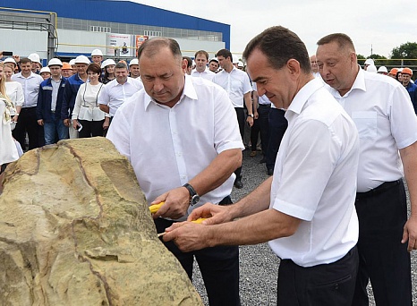 После подписания соглашения губернатор Краснодарского края принял участие в установке памятного знака на месте создания нового метизного цеха, а также осмотрел производственные цеха.